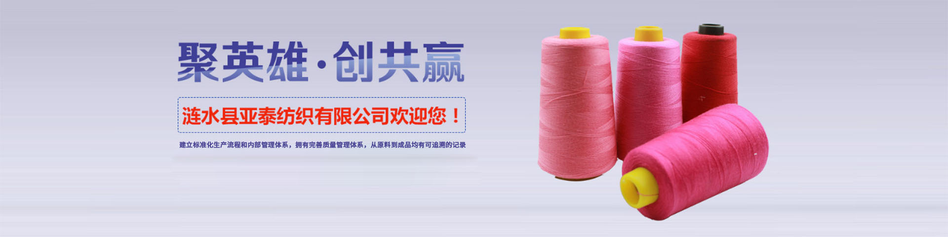 漣水縣亞泰紡織有限公司位于江蘇漣水縣,公司專業(yè)生產(chǎn)各種縫制線、織帶織布線、漁網(wǎng)線、輪胎線、風箏線等產(chǎn)品,廣泛應(yīng)用于服裝、鞋帽、皮革、箱包、家紡、帳篷、漁業(yè)、勞保用品、運動用品、特種行業(yè),材質(zhì)有滌綸、錦綸、氨綸等,滿足各行各業(yè)對線的需求。公司始創(chuàng)于1998年,擁有整套先進的染色制線設(shè)備,專業(yè)的技術(shù)管理人員,先進的生產(chǎn)工藝。歡迎您光臨指導(dǎo)、洽談合作!